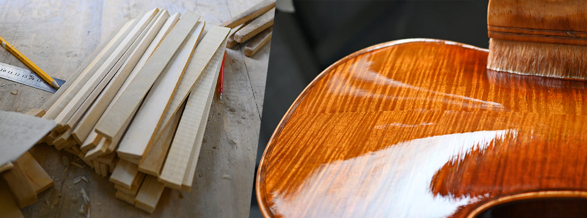 We select and prepare aged maple and spruce to guarantee stability, resonance, and the rich tonal character that defines our instruments.